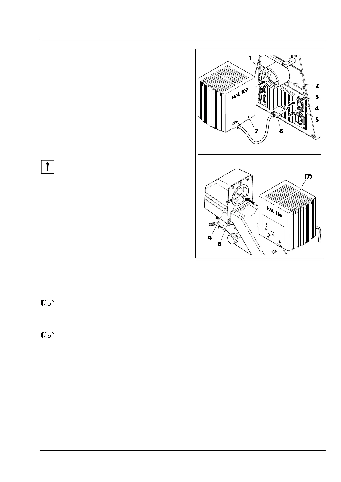 Only one halogen or LED illuminator can be connected directly to the 7, 7 materials stand.