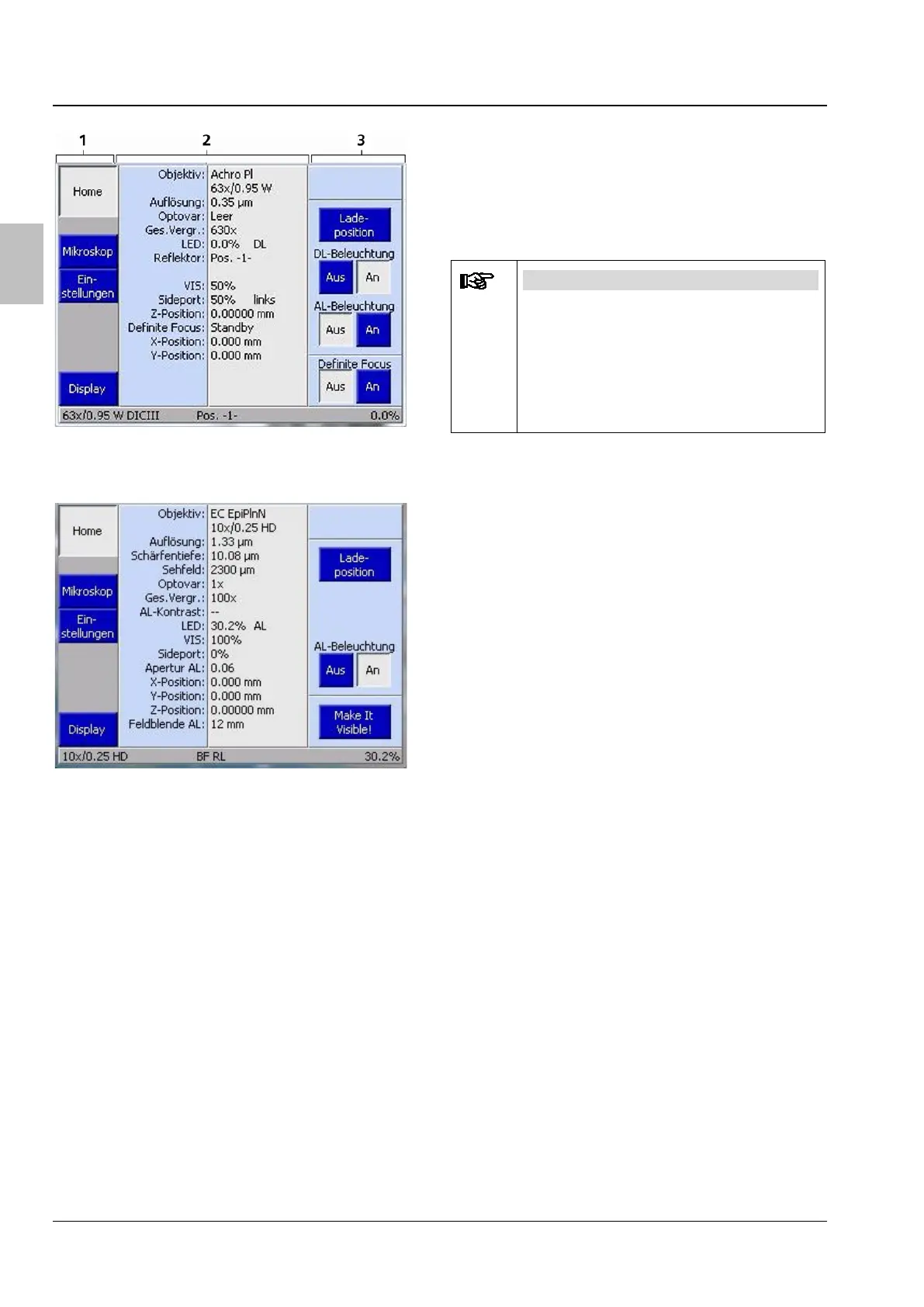 Nach dem Einschalten des Mikroskops erfolgt die