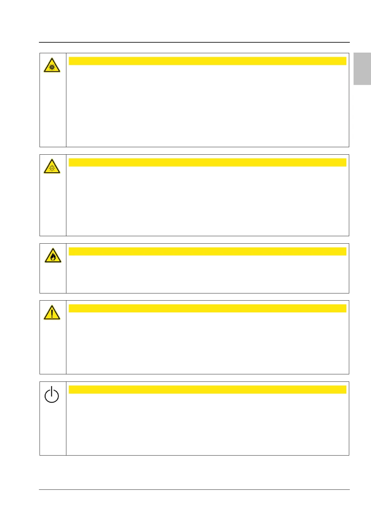 − Optical radiation (e.g. LED radiation) is emitted. Do not look into the beam. This may cause