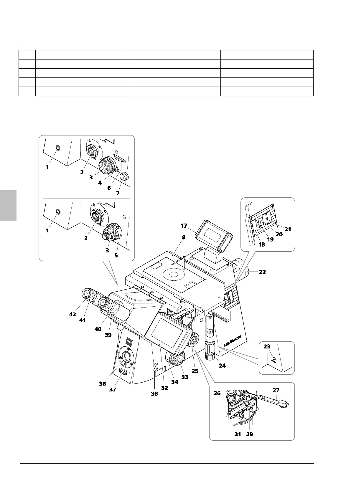 Figura 2 Elementos essenciais de operação no Axio Observer materials