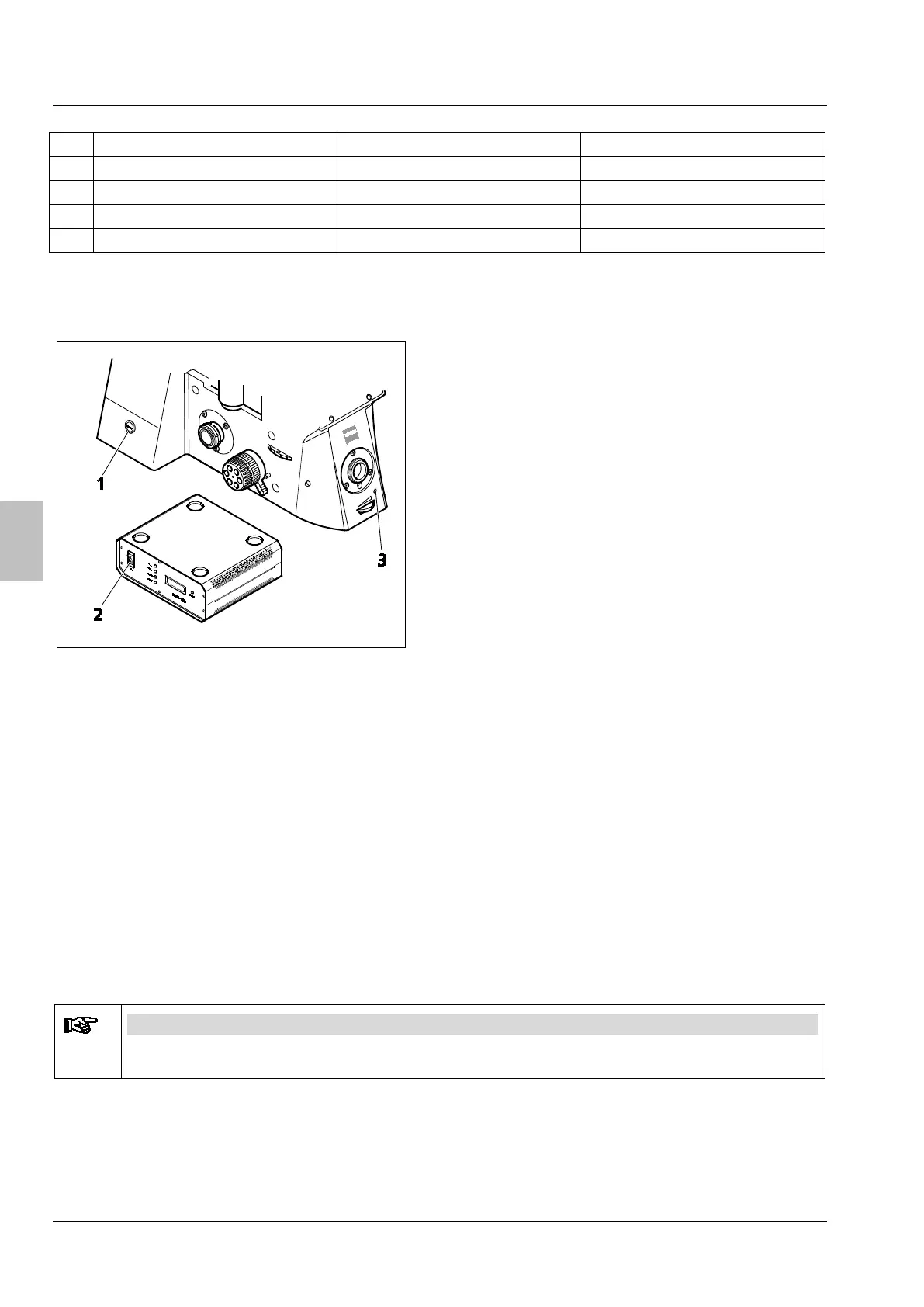 • Ligar microscópio com tecla standby à esquerda no estativo, (Figura 3/1) .