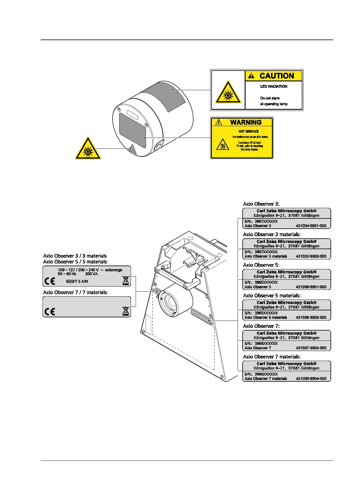 Axio Observer Warning and information labels on the device ZEISS