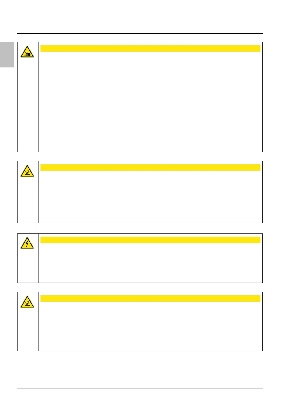− Risk of crushing! Do not put hands or fingers into the path of the motorized components