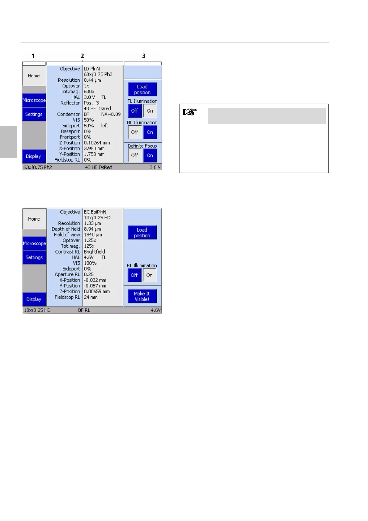 • Pour la mise hors tension du microscope, appuyer sur la touche Standby (Figure 3/1) et mettre ensuite