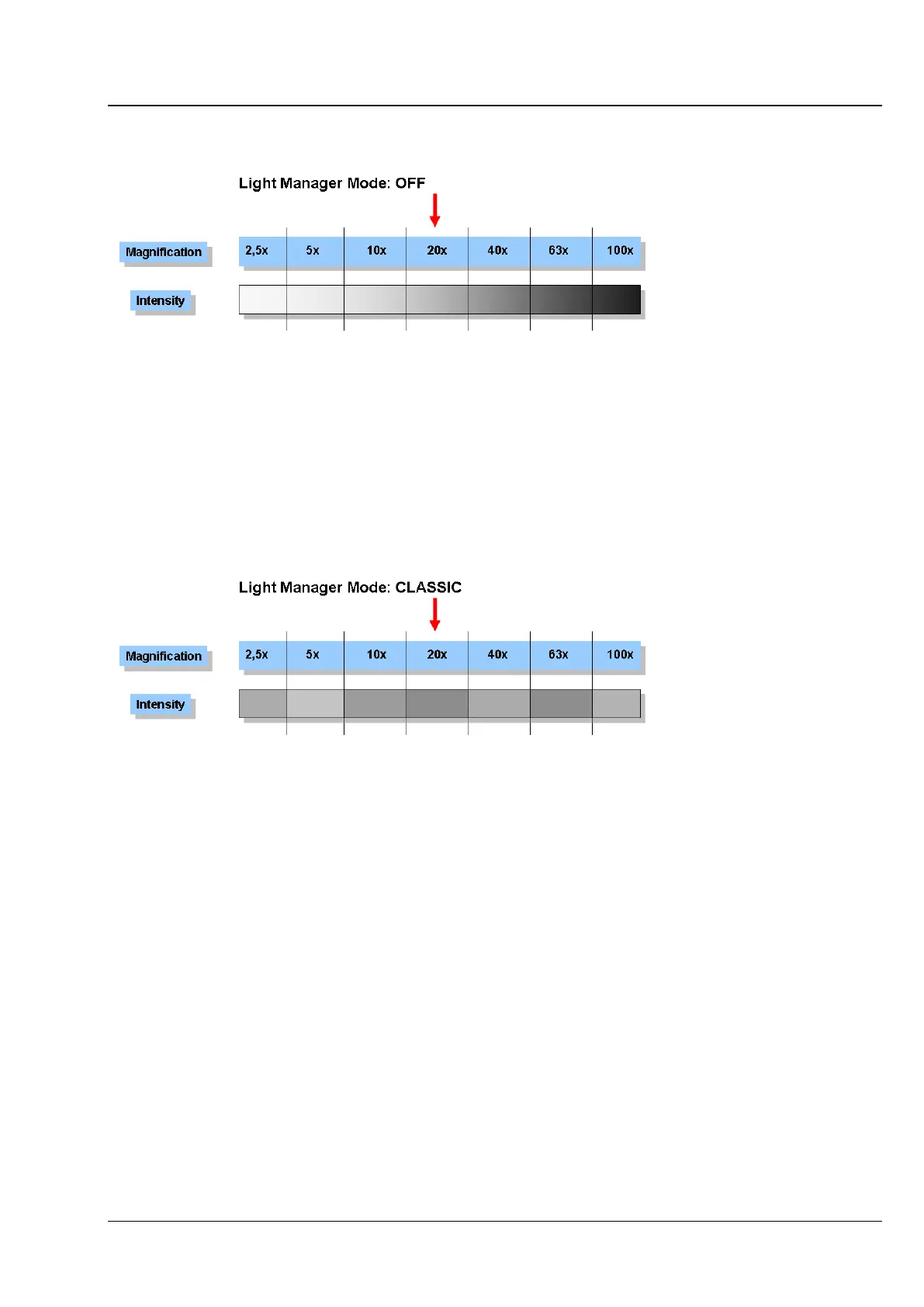 If the Light Manager is switched off, the microscope operates like a conventional light microscope.
