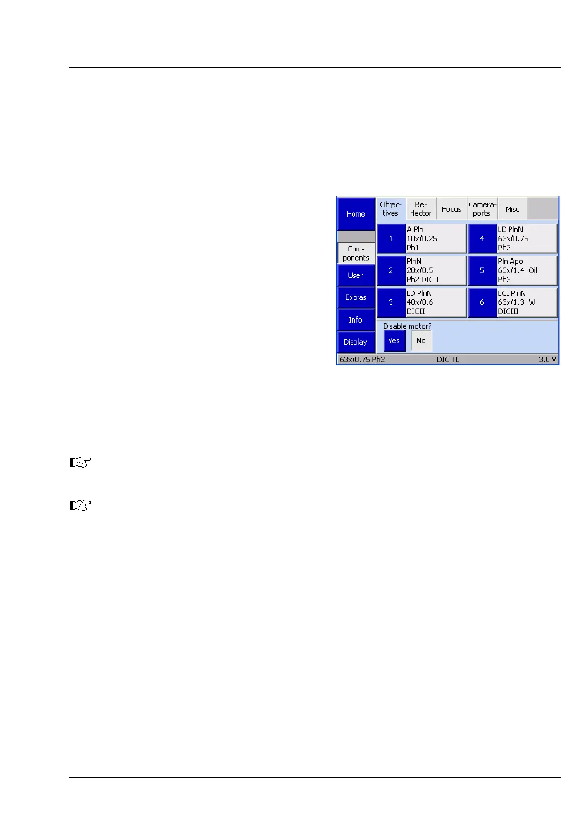 The Disable motor? - Yes button can be used to deactivate the motor if an objective heater or
