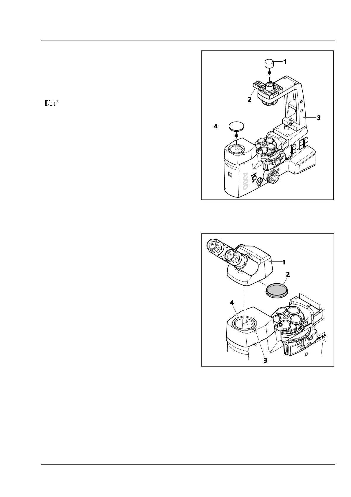 • Insert the binocular tube (Fig. 3-2/1) with the dovetail ring into the tube port (Fig. 3-2/4) of the ergo