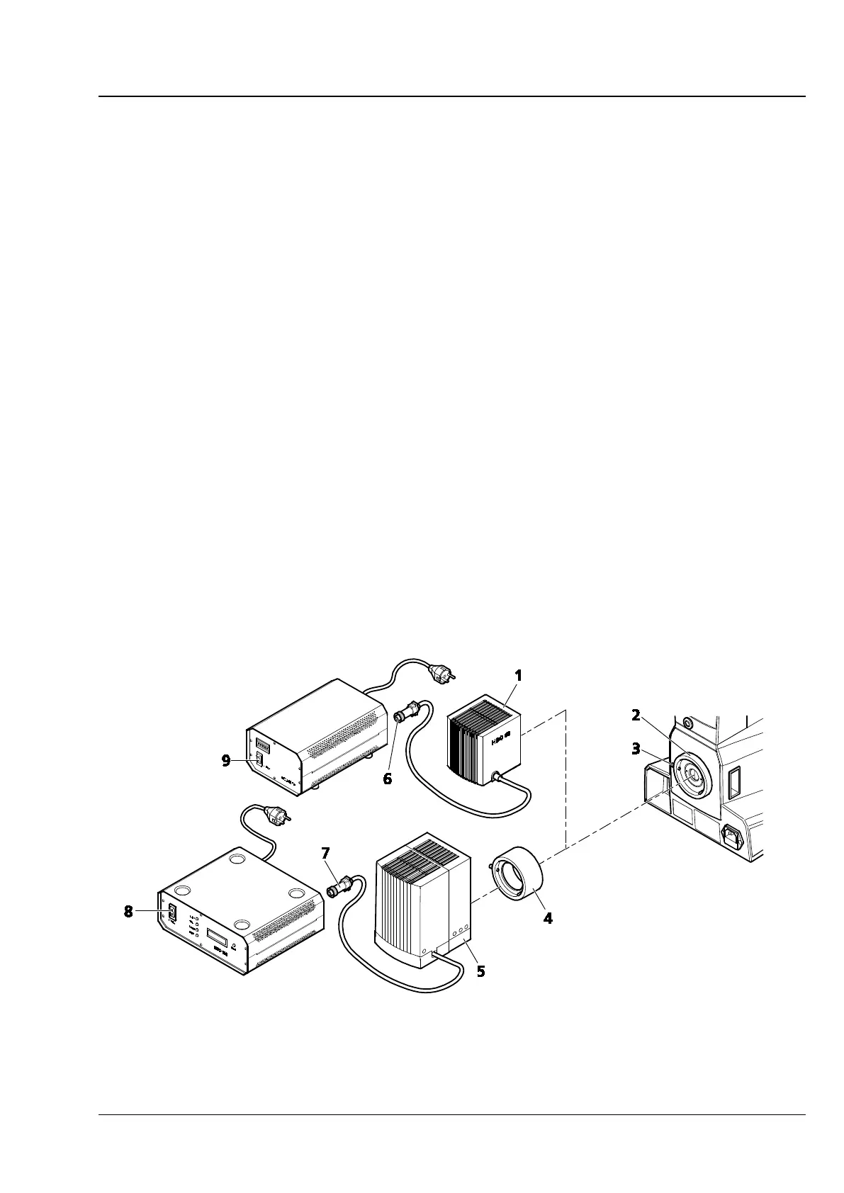 • Connect the multipole illuminator plug (Fig. 3-16/6 or 7) to the socket of the appropriate power