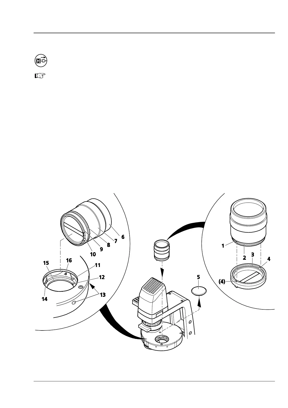Switch off the microscope and pull the power plug before mounting any optional components.