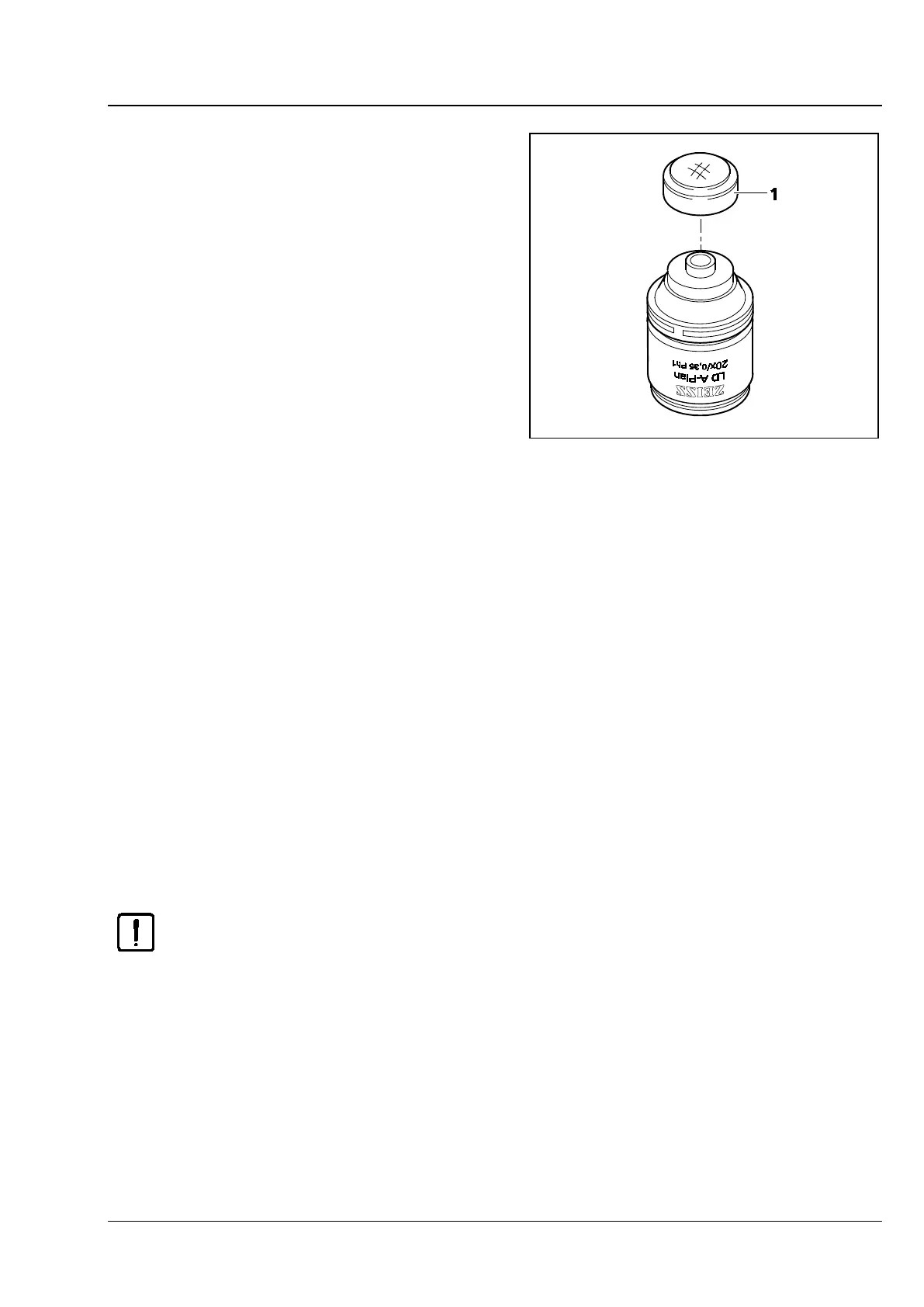 Plug the appropriate cover slip cap (Fig. 3-37/1) onto the objective to adapt LD A-Plan objectives to thin