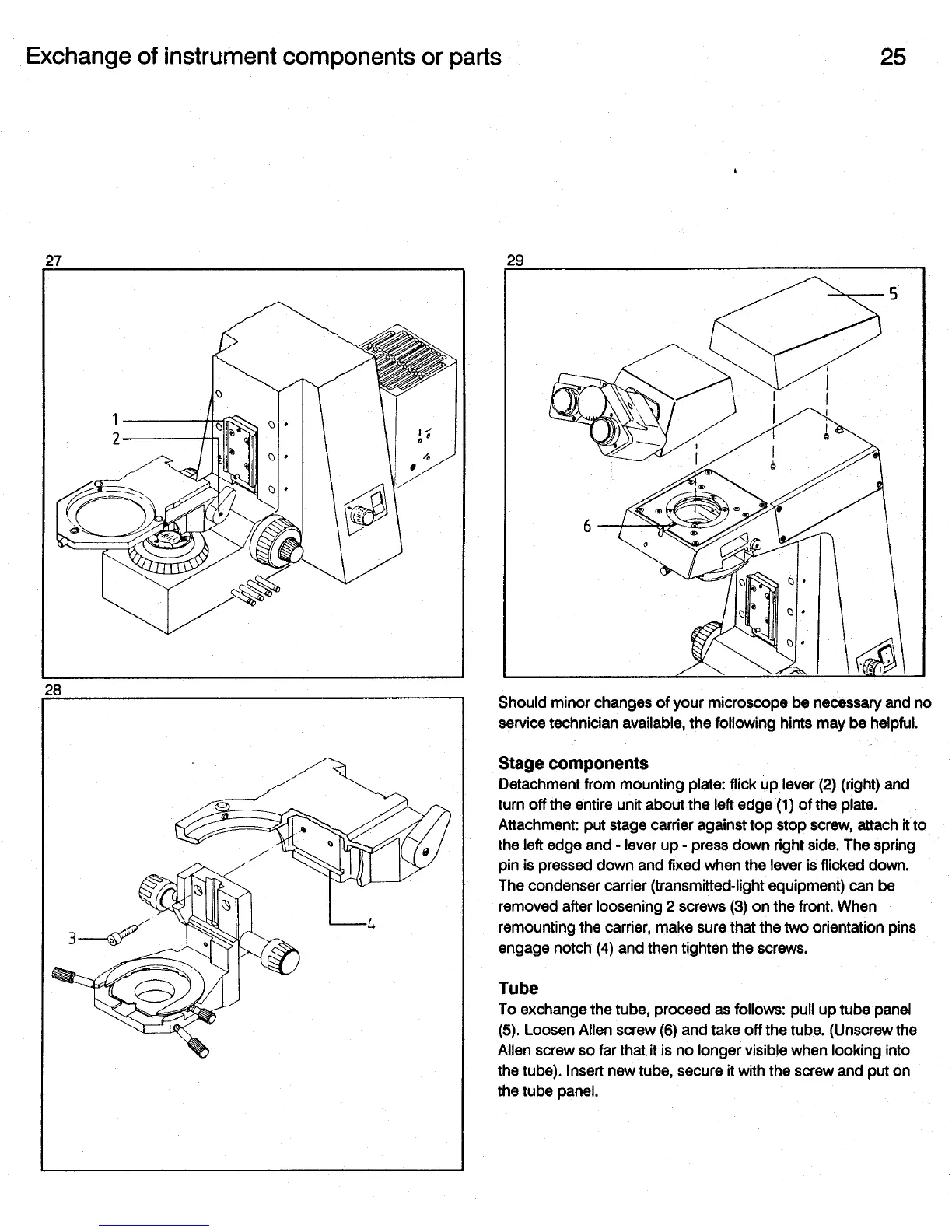 Zeiss Axioplan Universal microscope - Exchange of Instrument Components or Parts; Stage Components; Tube