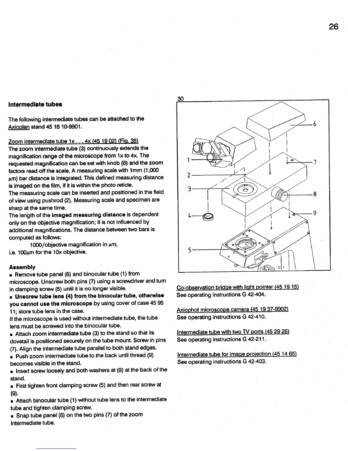 Zeiss Axioplan Universal microscope - Intermediate Tubes; Assembly