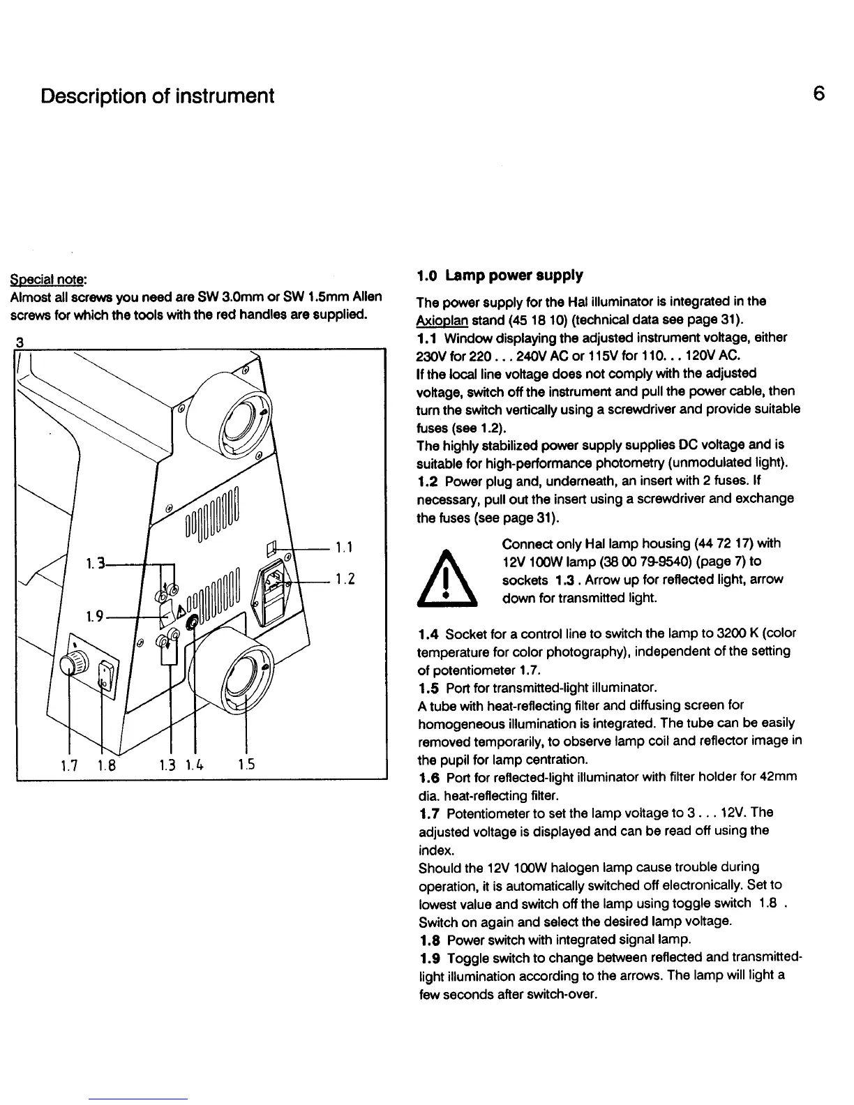 Zeiss Axioplan Universal microscope - Description of Instrument; Lamp Power Supply