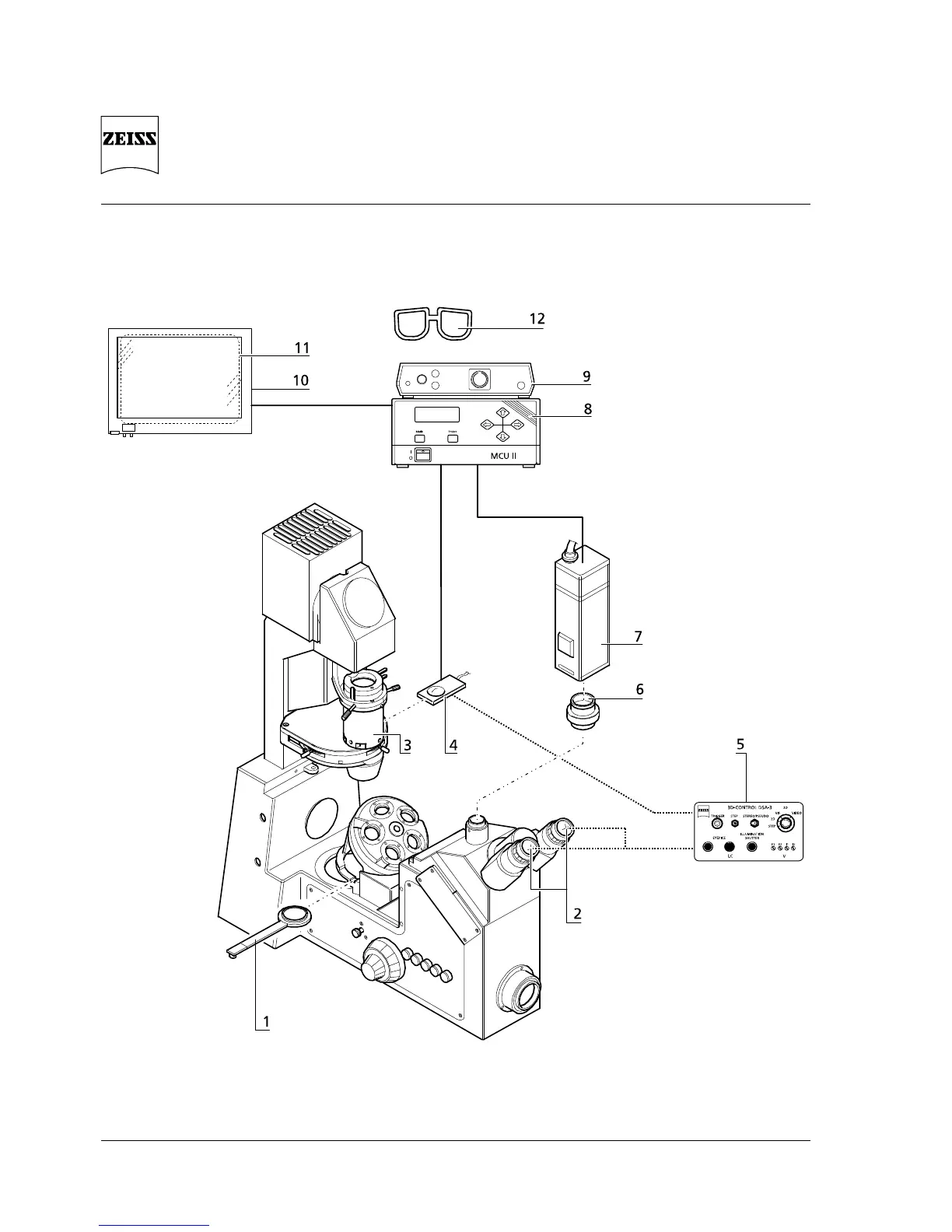 Zeiss Axiovert 135 - 3 D Microscopy for; Axiovert 100;135;135 M; 1 Components for 3 D Microscopy Overview; Fig. 1 Overview