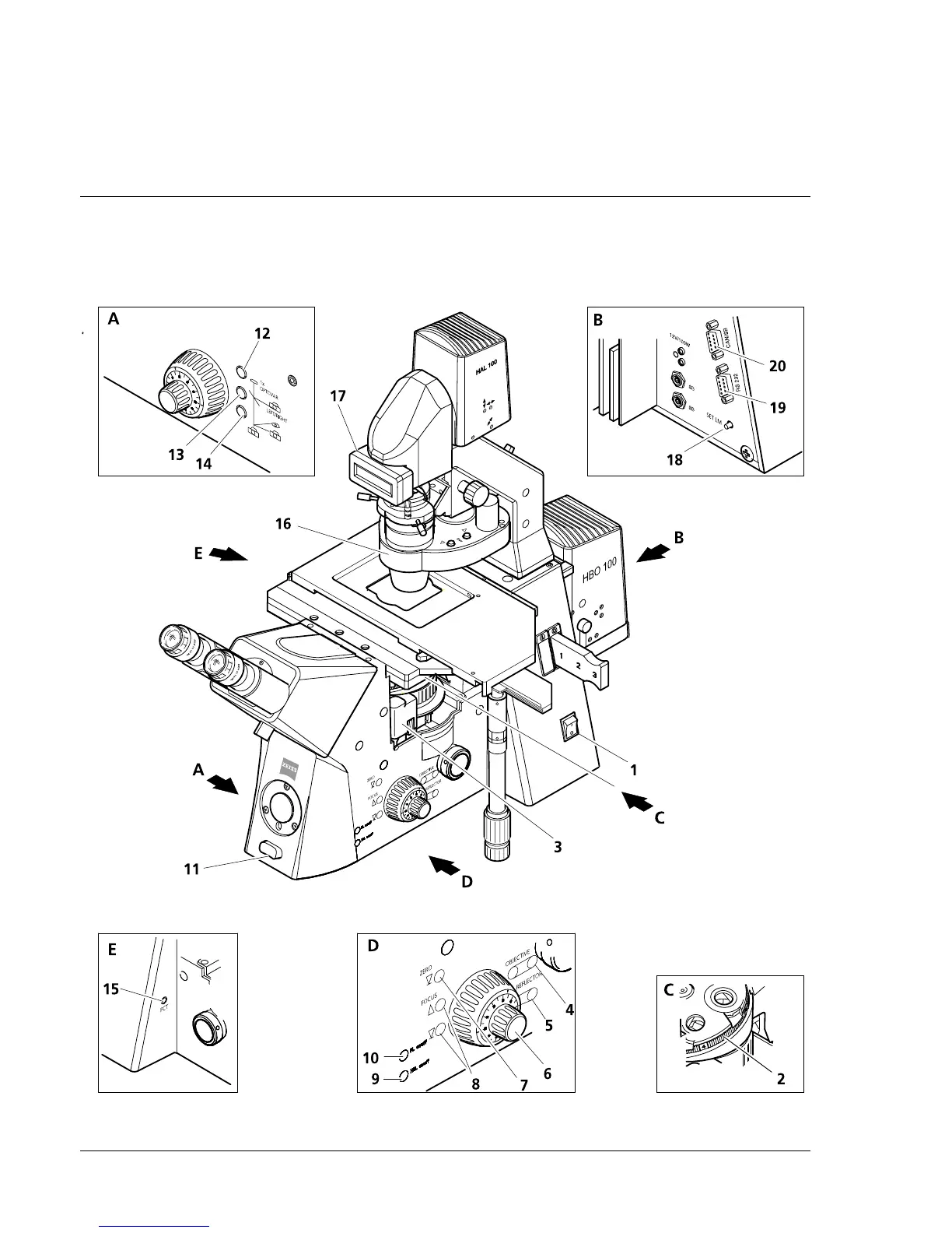 3.2.1 Operation and function controls on the Axiovert 200 (motorized)
