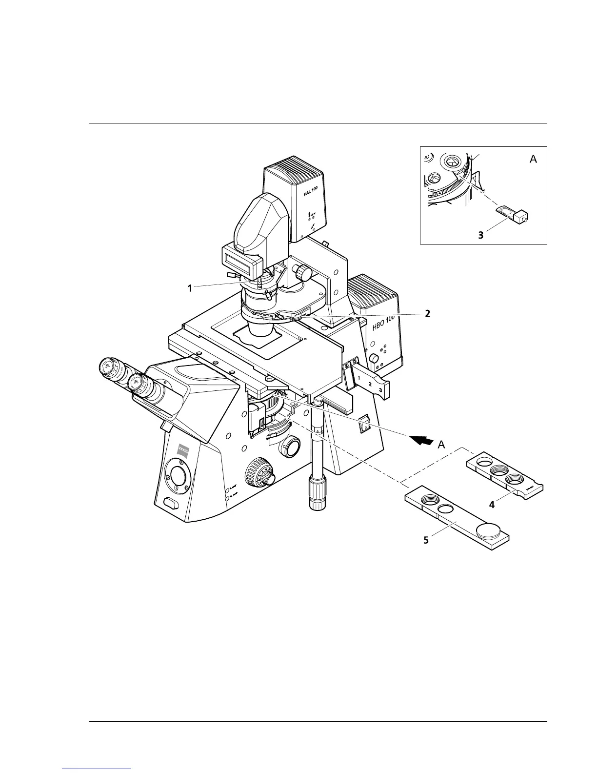Fig. 3-20 Components for the transmitted-light DIC technique on the Axiovert 200