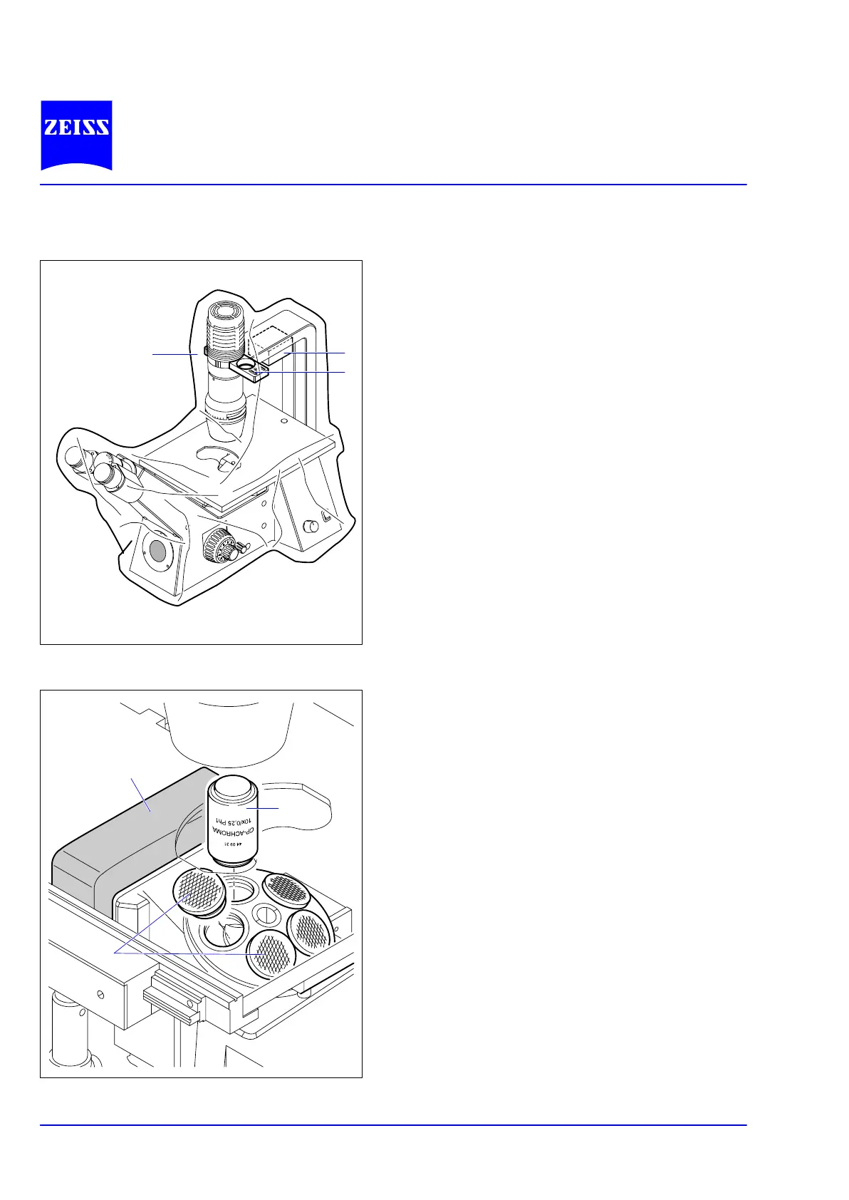• Remove the dust covers (2Ć3ā/ā3) from the objective