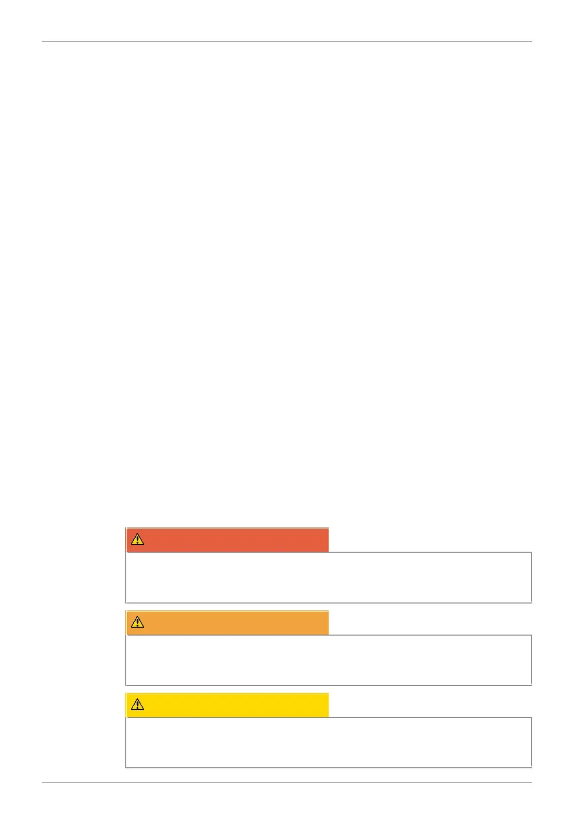 The following warning messages indicating dangerous situations and hazards are used in this doc-