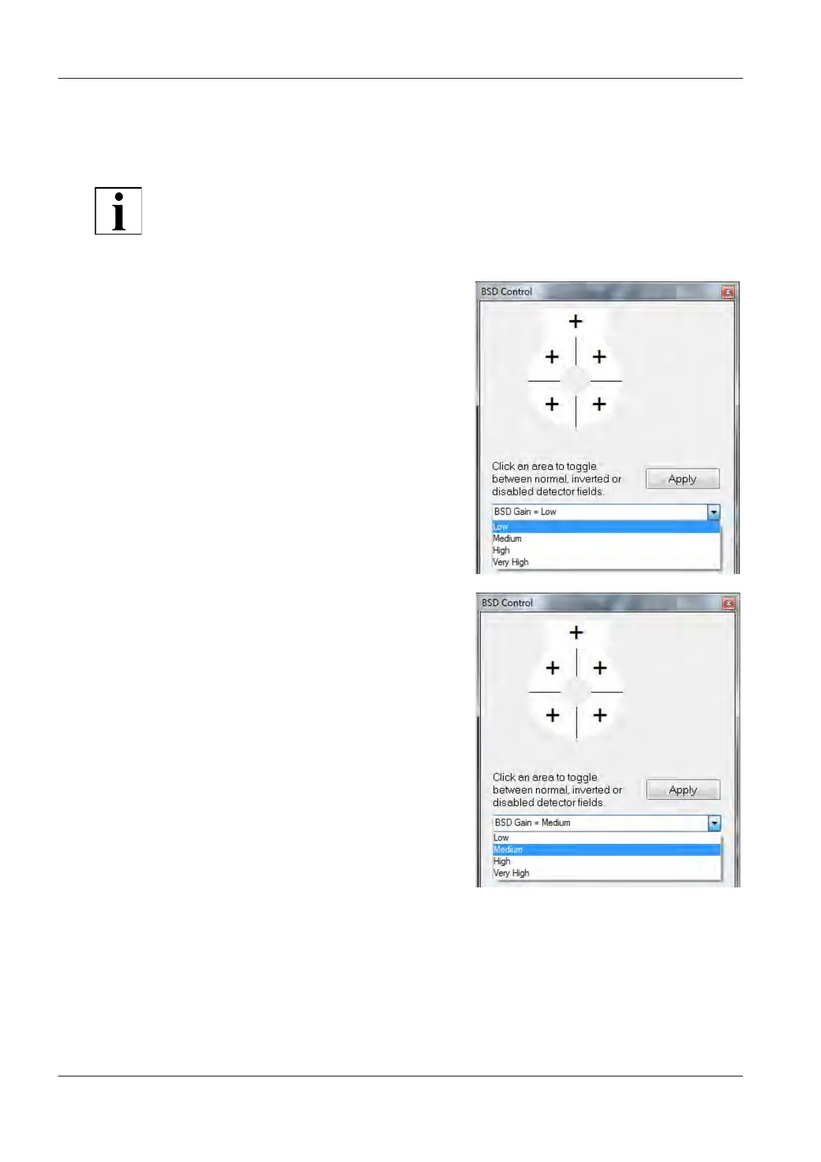 1Select BSD Gain = Low from the