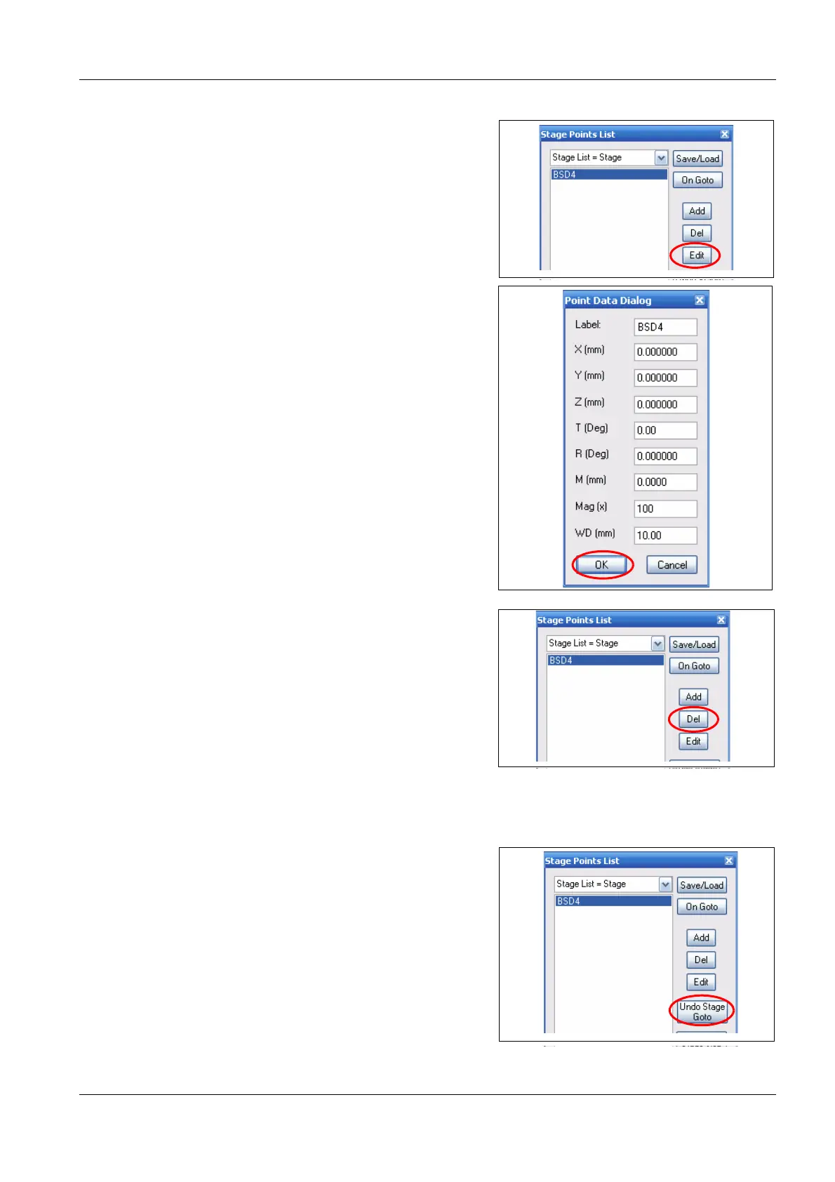 5 To delete a stage position, mark the position