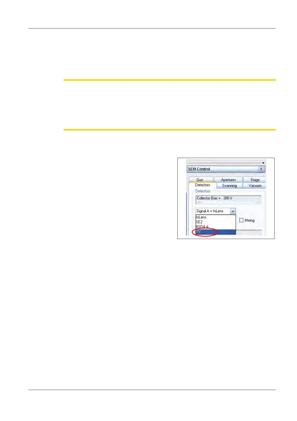 1 Go to the Detectors tab in the SEM Control