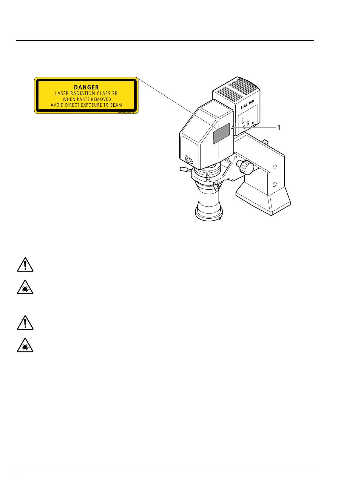 Switch the laser off in any case prior to replacing the halogen lamp of the HAL illuminator!