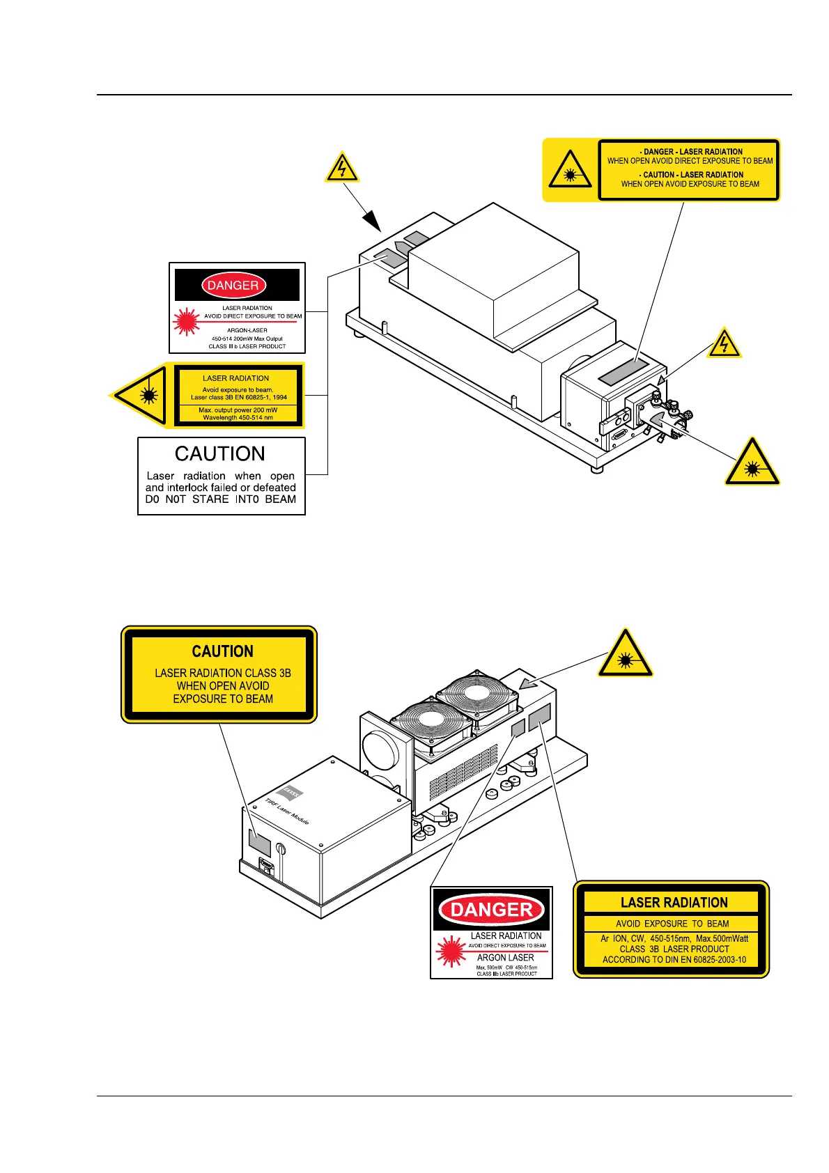 Fig. 1-7 Warning and information labels at the laser module, variant 1