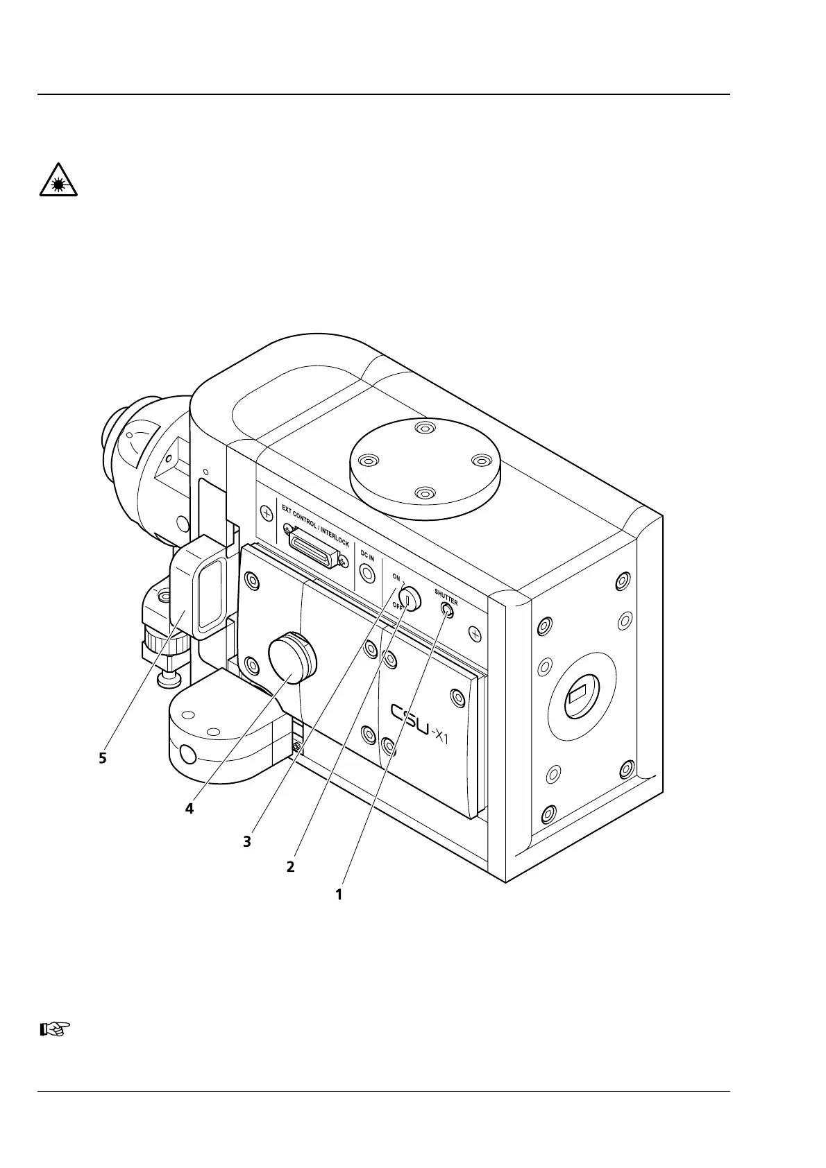 2 ON/OFF key switch with control LED 5 Emission filter slide