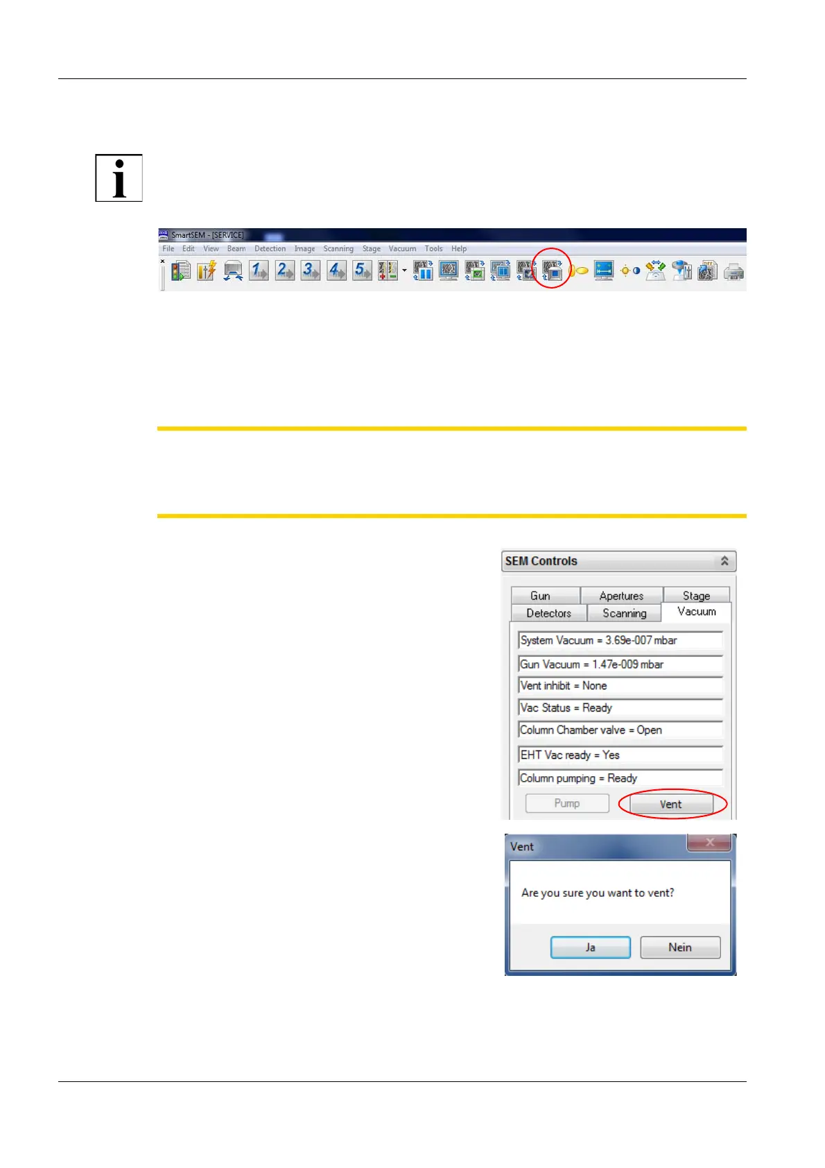 To display the inside of the specimen chamber in the image area of the user interface, switch to