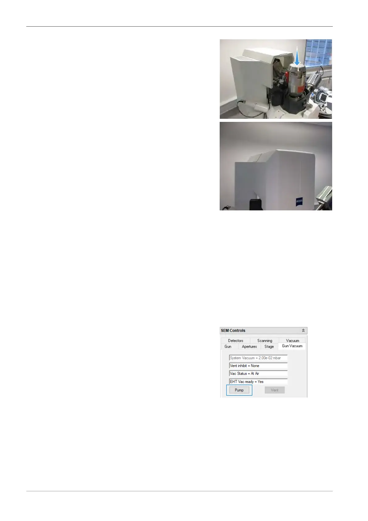 2. Evacuate the microscope via Pump.