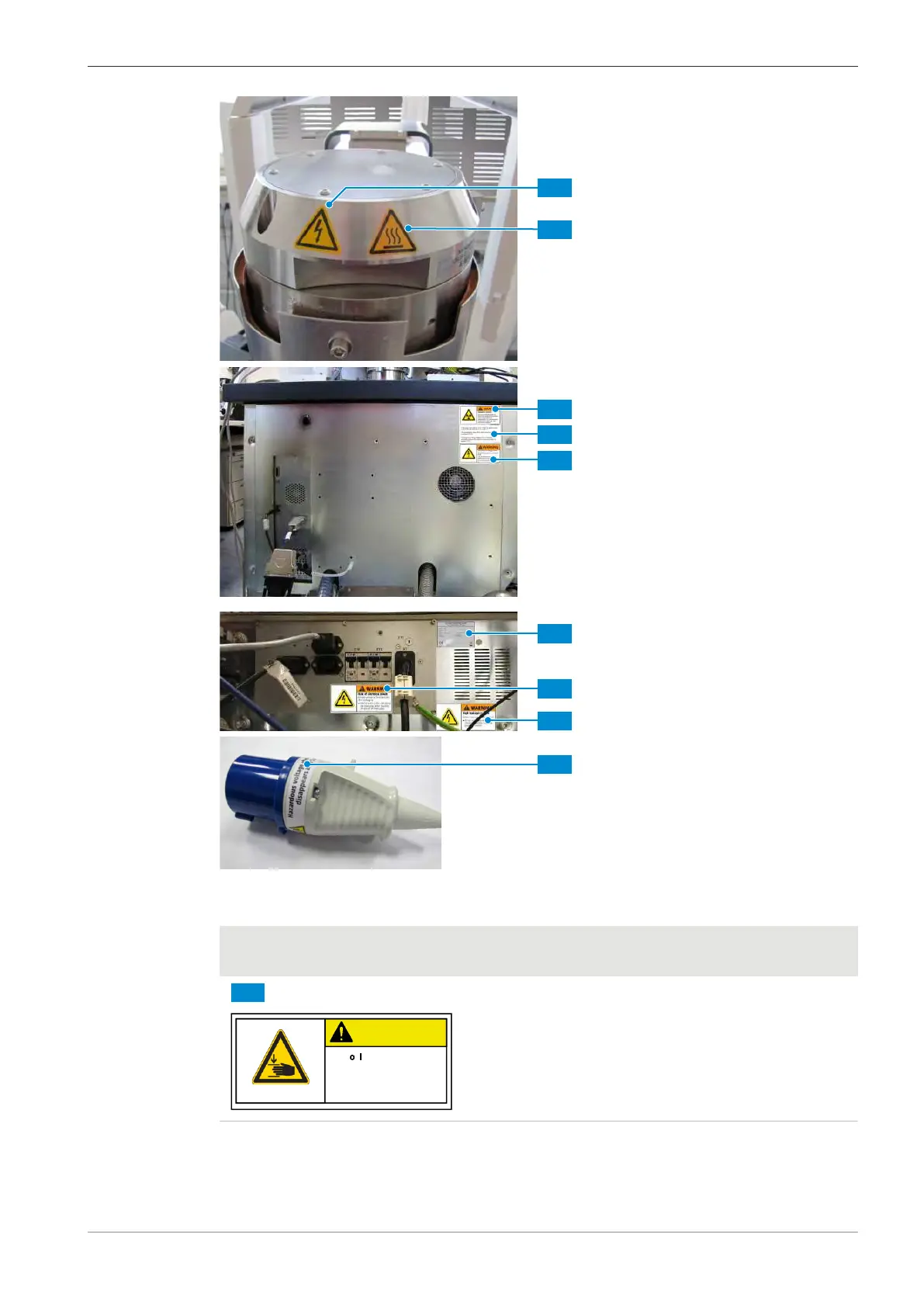 The safety labels always need to be attached to the correct spots at the microscope. If a safety la-
