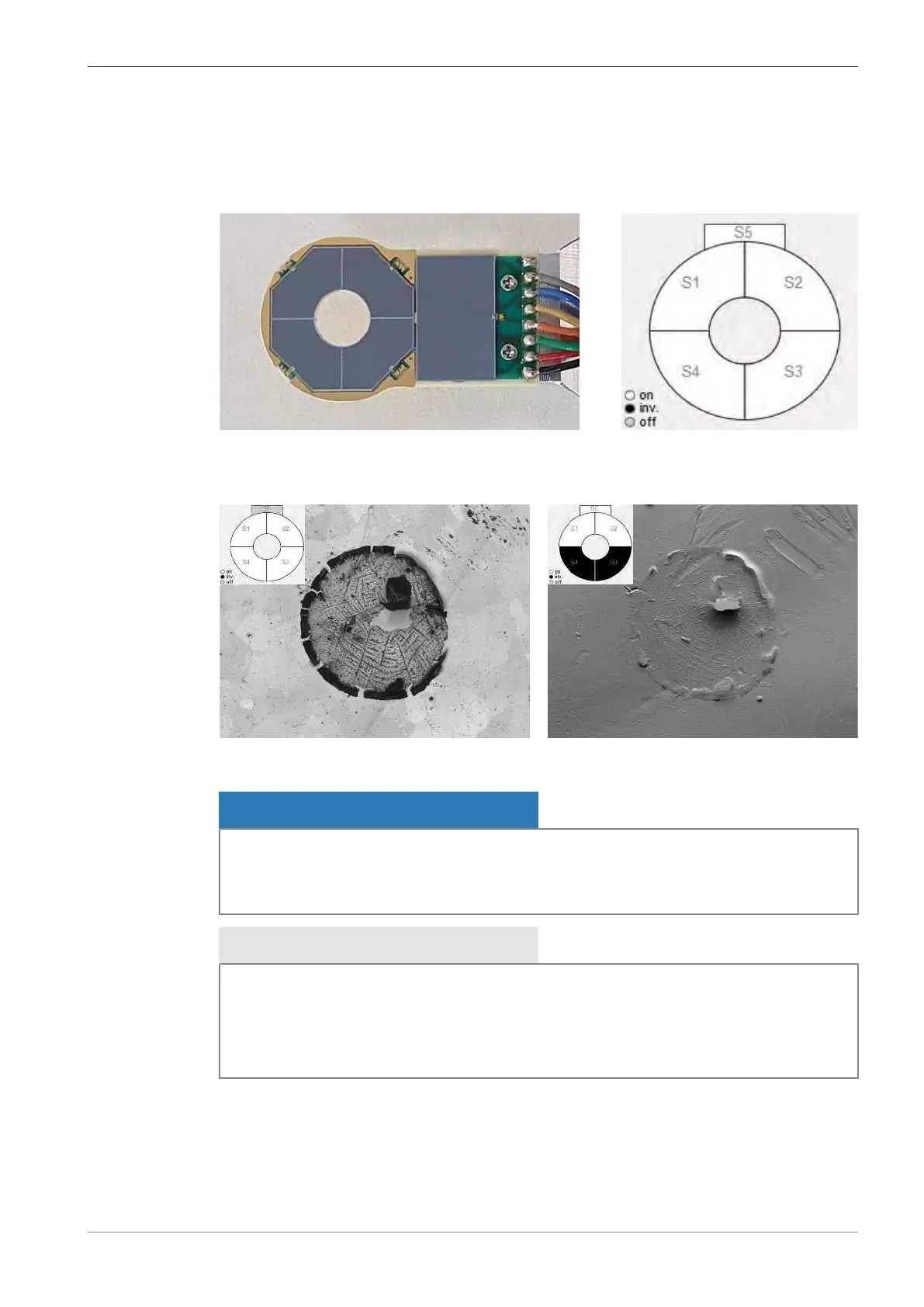 Fig.31: BSE images showing different contrast with different segment configuration of the BSD