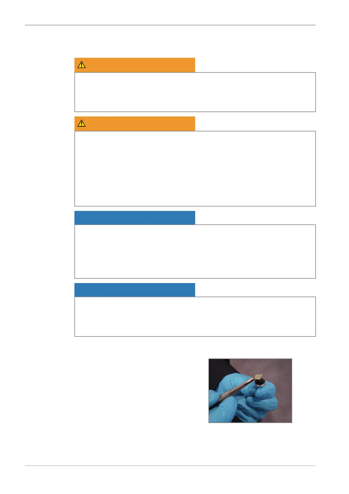 4 Always wear lint-free gloves when touching the specimen, specimen holder, or stage.
