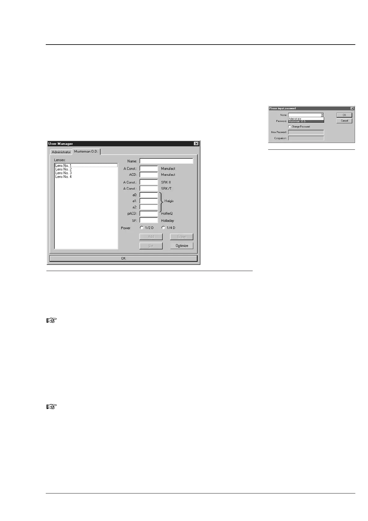 data via the Options - User Manager. by entry/selection of her or
