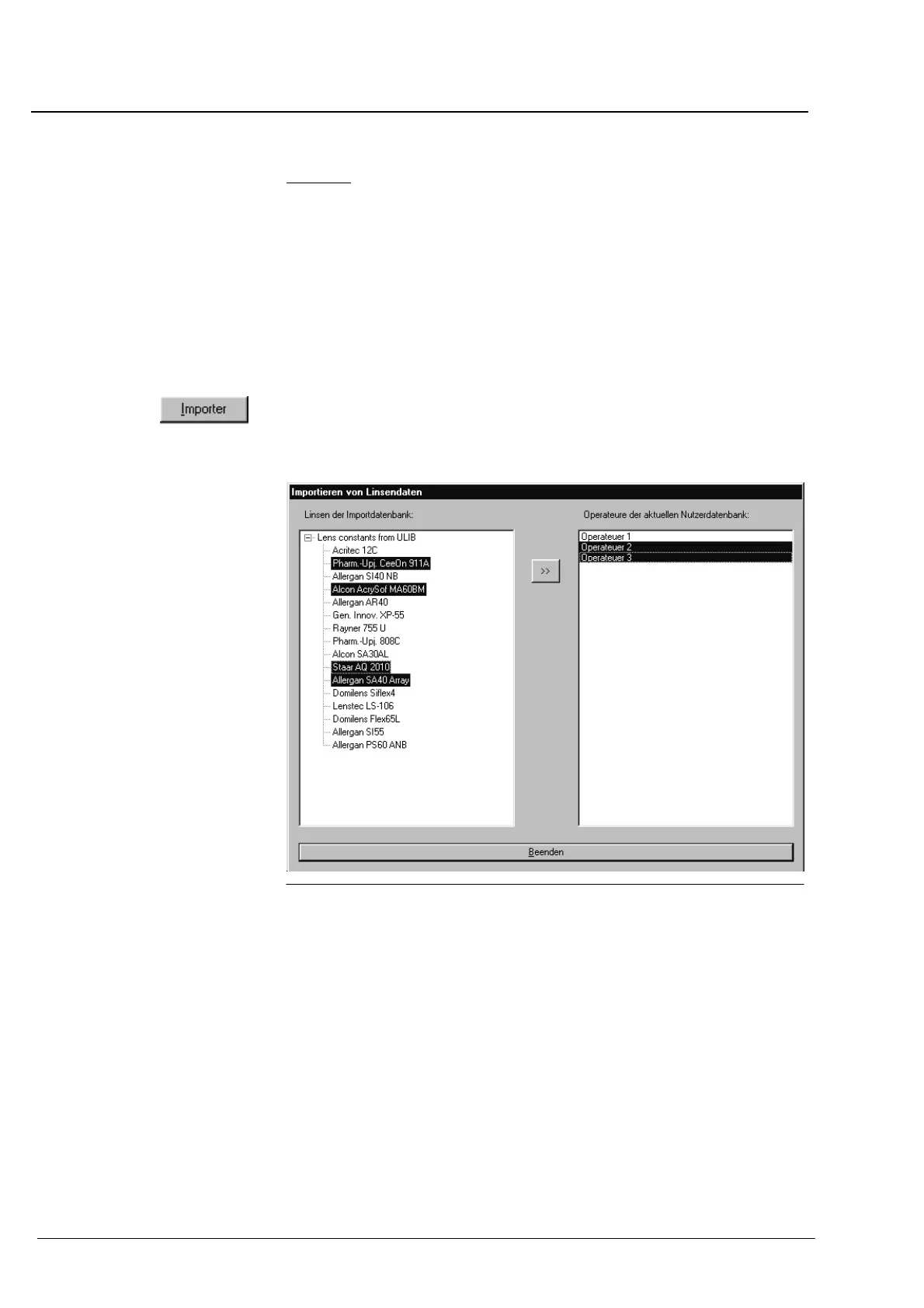 correspondantes) peuvent être reprises dans le IOLMaster à partir d'une