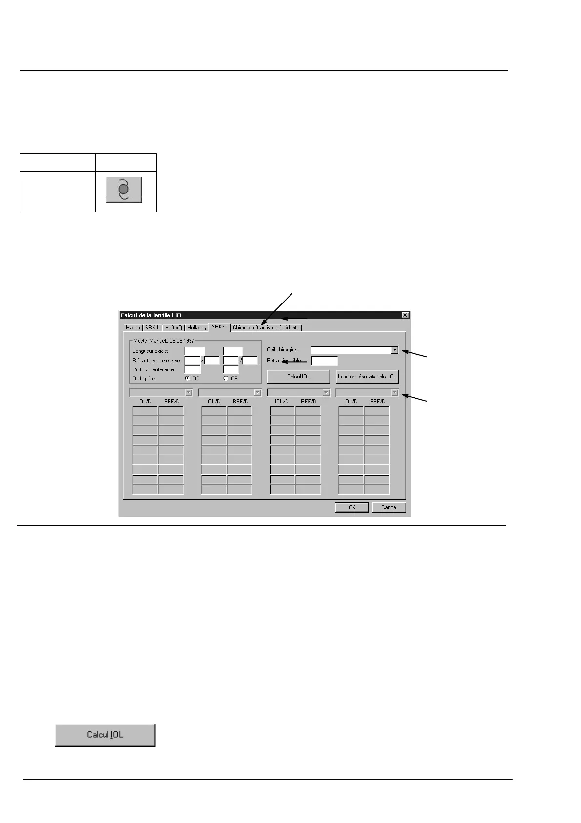 Après l'entrée des indications nécessaires, l'IOL est évaluée pour