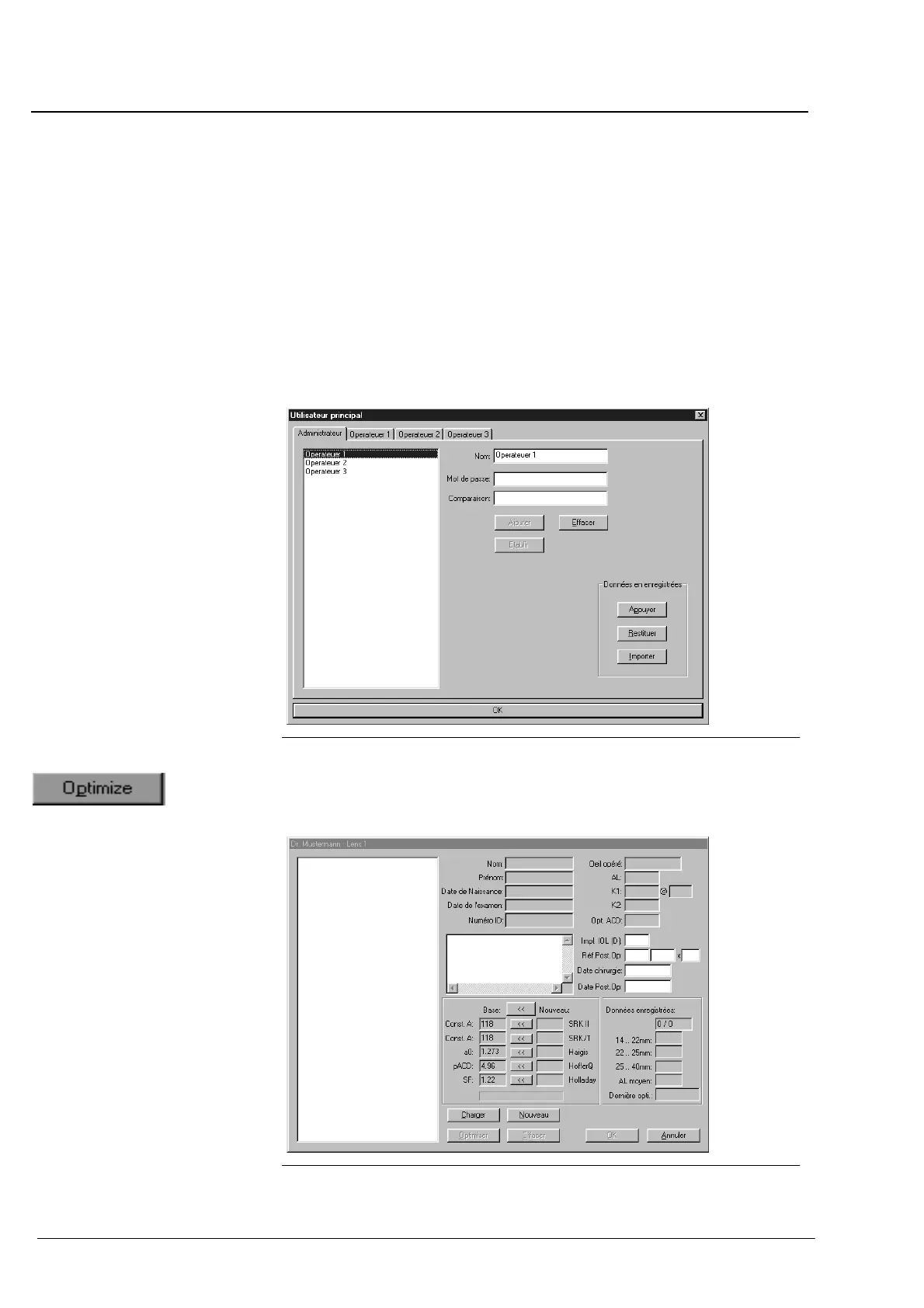 données. la boîte de dialogue du manager utilisateur pour l'opéĆ