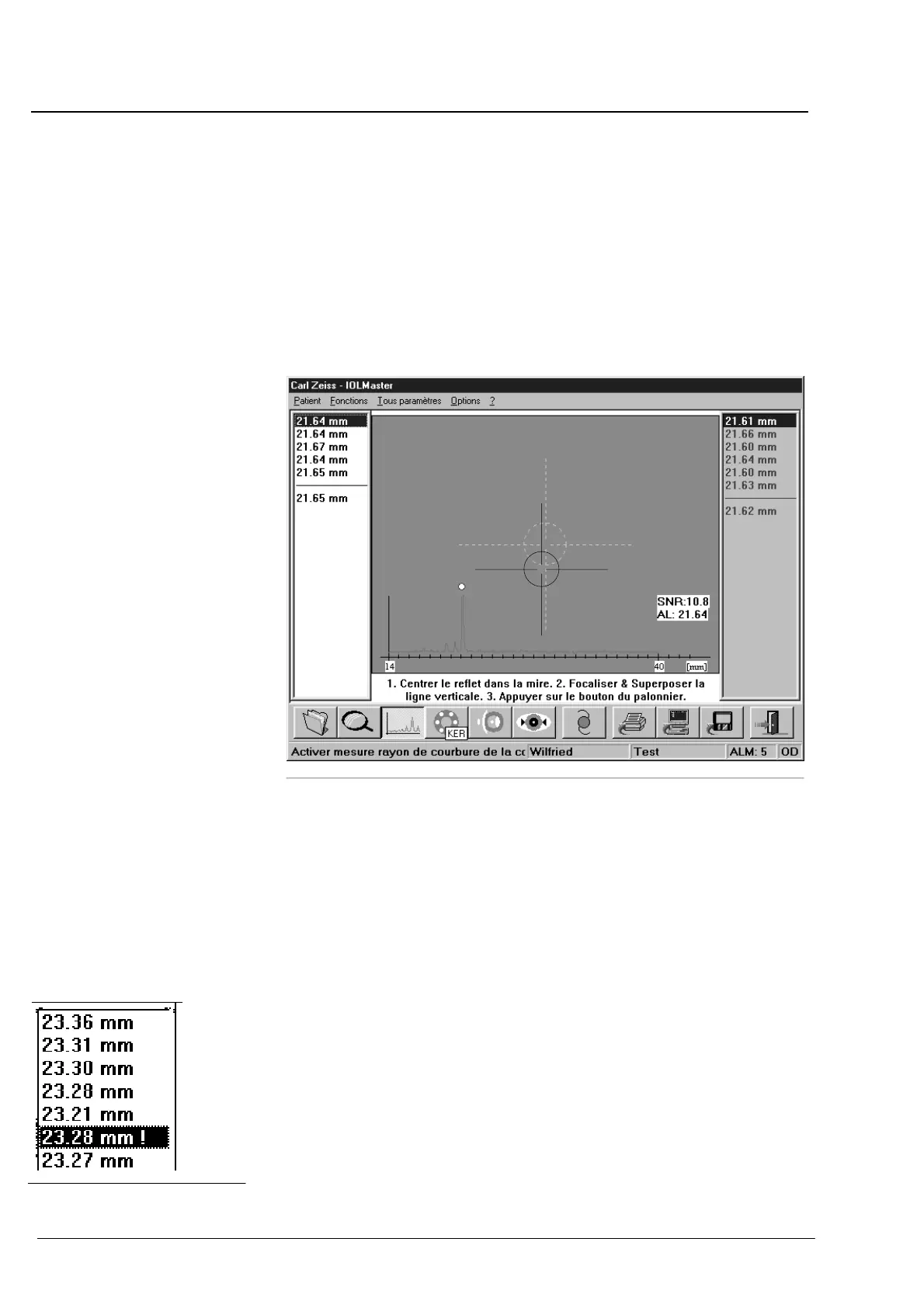 Fig. 43 Représentation des graphiques de la troisième mesure de longueur axiale