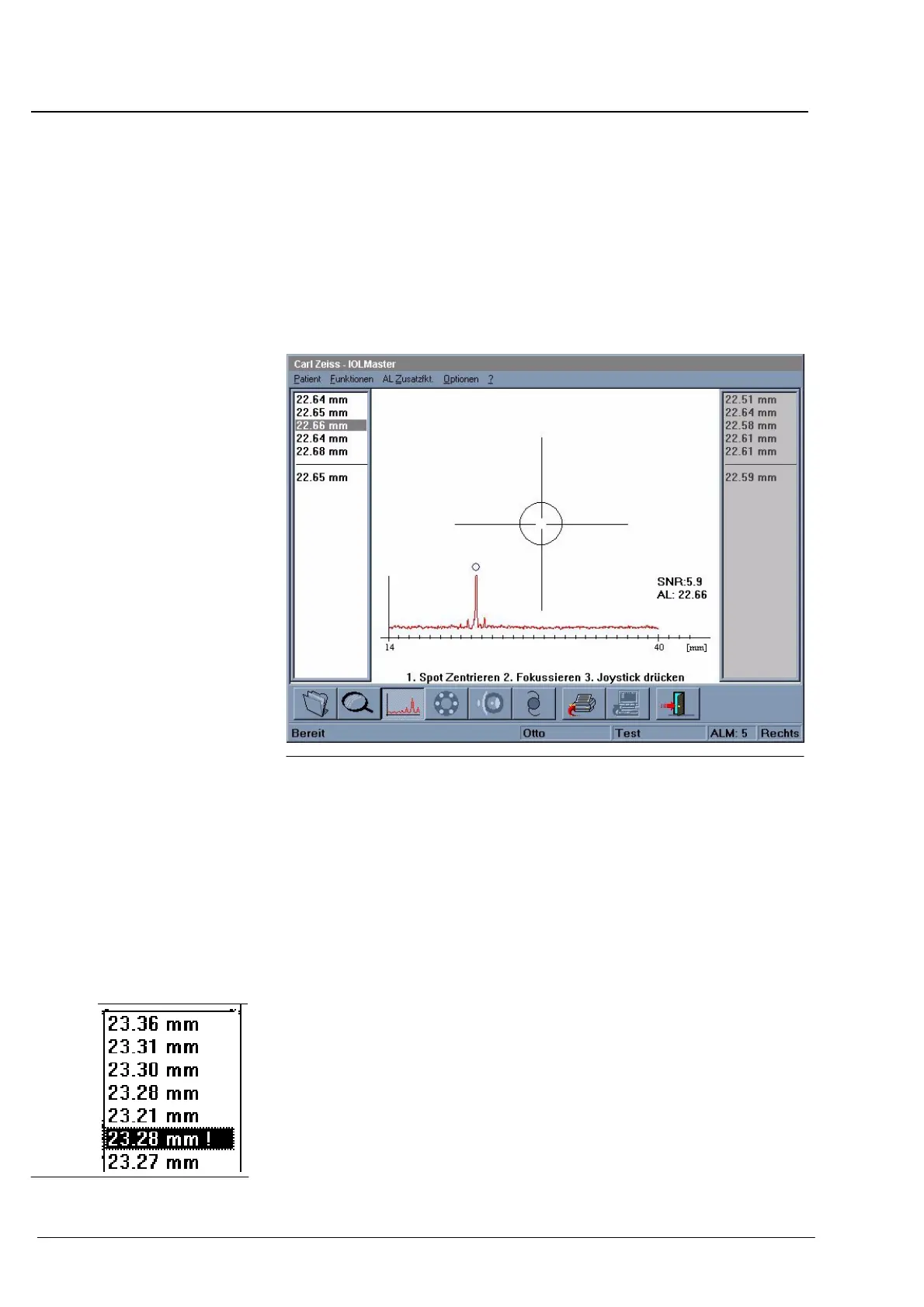 (22,66 mm SNR: 5,9) am rechten Auge mit nicht dargestelltem VideobildĄ