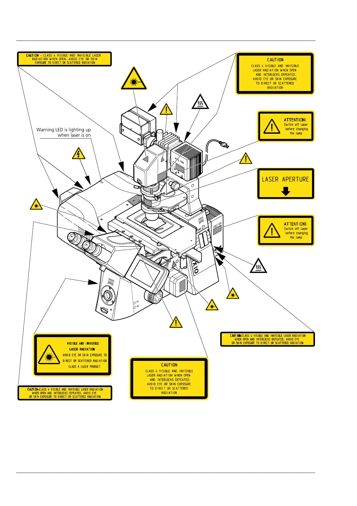 Fig. 6 Warning and information labels on the Axio Observer.Z1 microscope with the