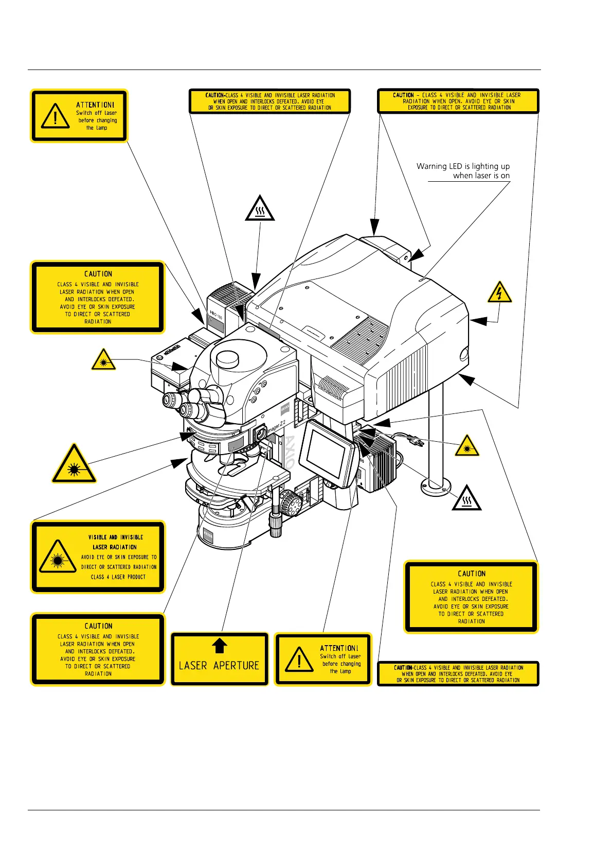 Fig. 10 Warning and information labels on the Axio Imager.Z2 microscope with the