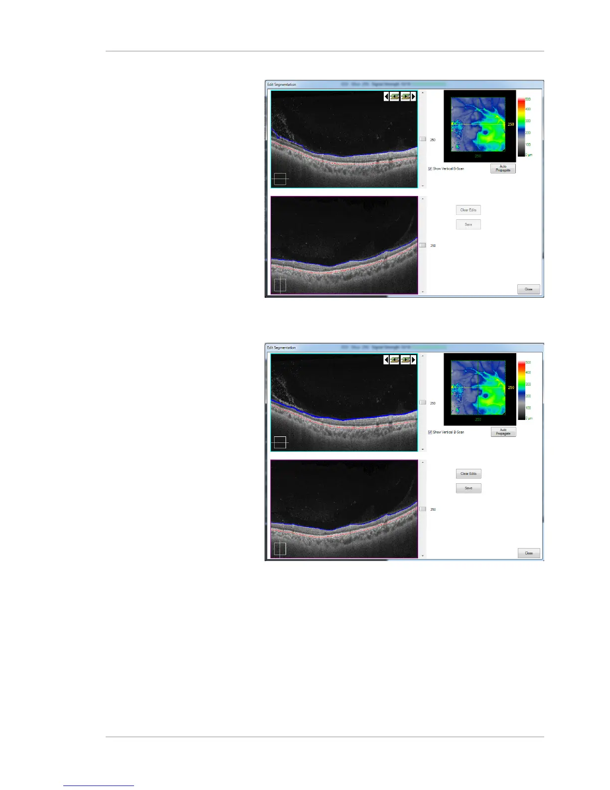 red segmentation line (RPE) to adjust a boundary, as shown