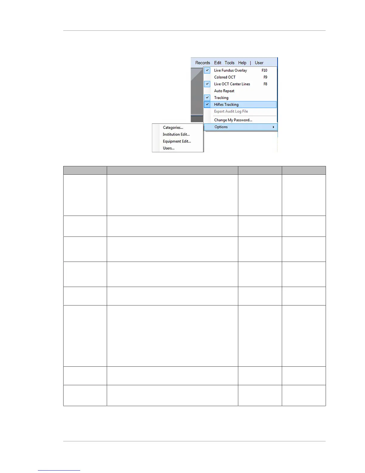 HiRes Tracking (for Angio 3mmx3mm scans only) Turns on or off Hi