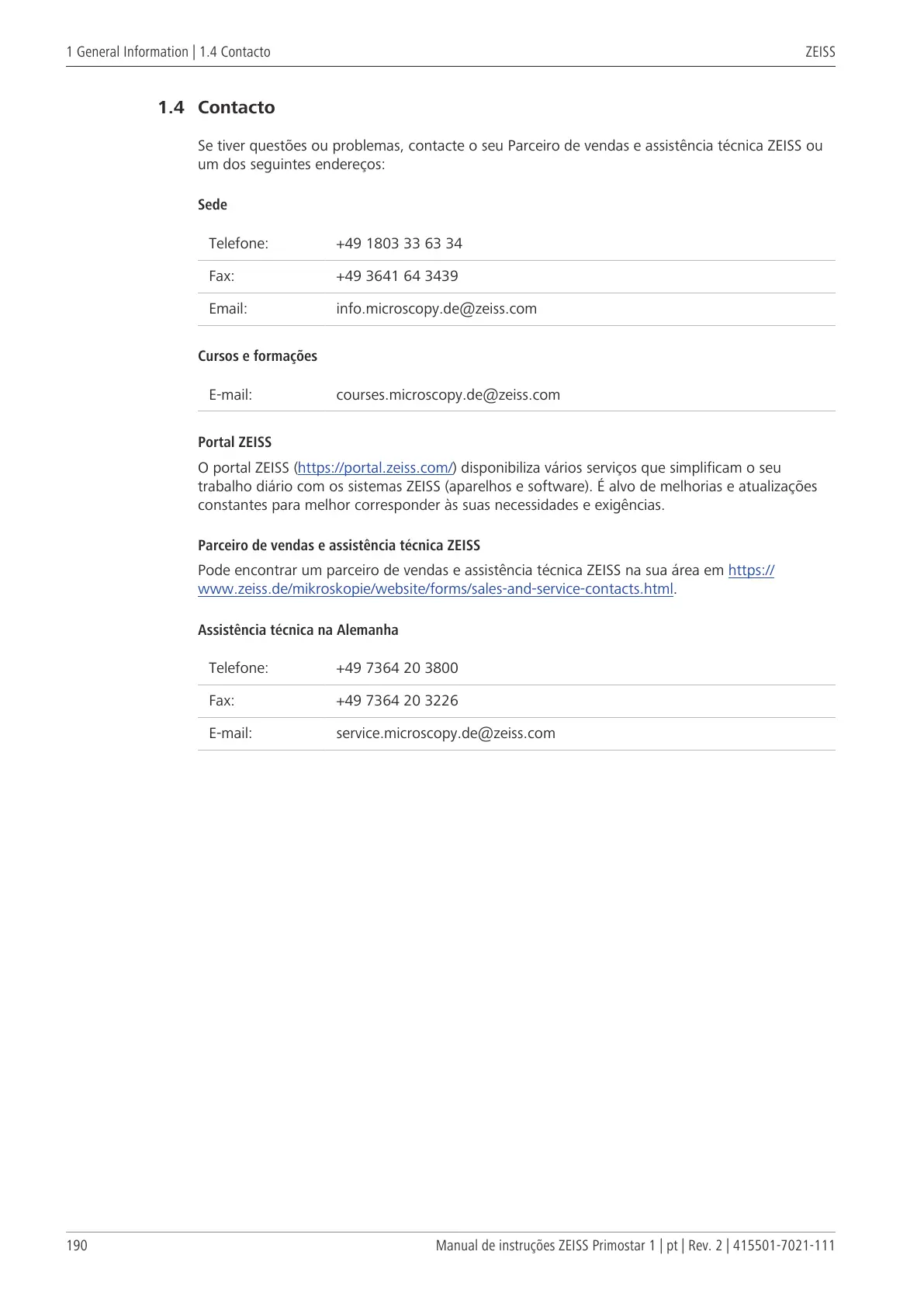 1 General Information | 1.4 Contacto ZEISS