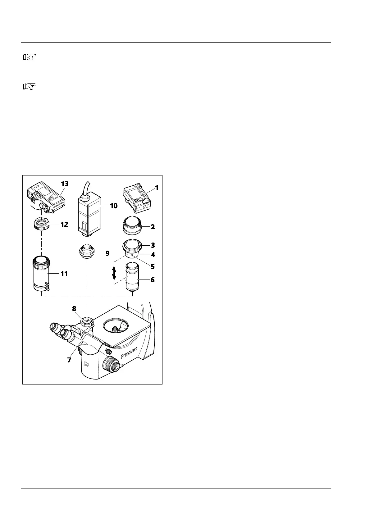 • Push the transmitted-light illuminator (e.g. transmitted-light illuminator with LED, Fig. 36/6) into the