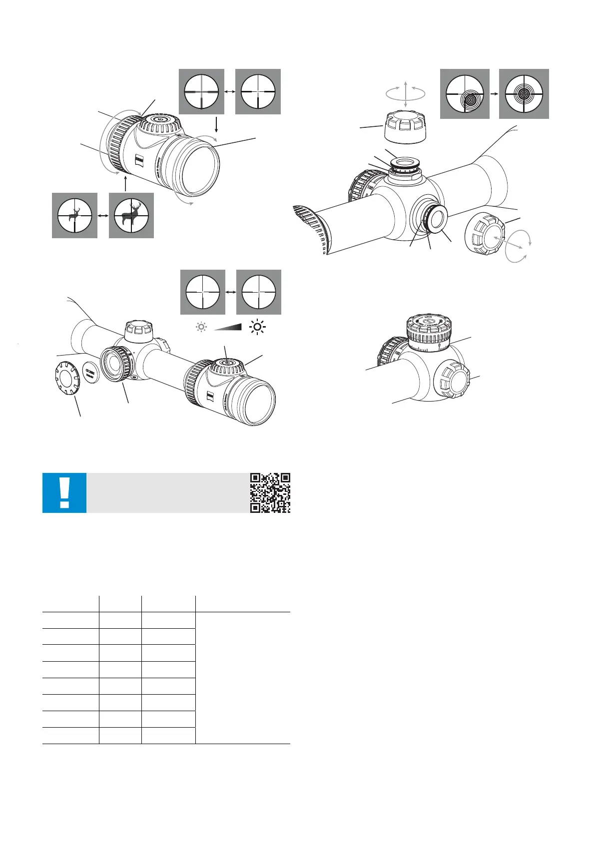 de la compensation dioptrique (2). La cible, tout comme le réticule, doit être