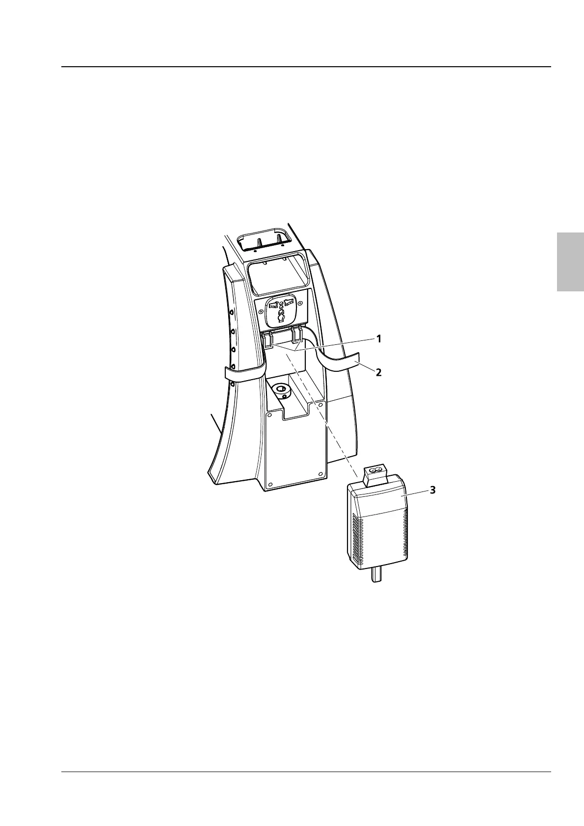 Fig. 6 Fixation au statif de l’adaptateur secteur avec fiche IEC