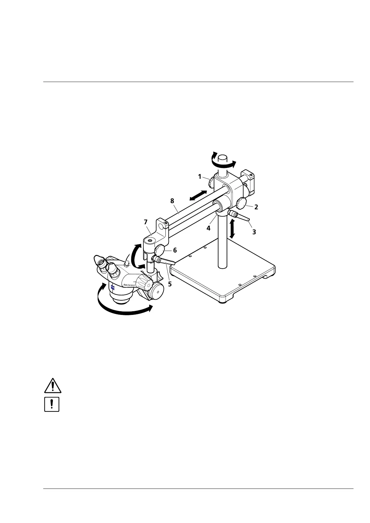 Double boom and weight of the microscope must be adjusted to each other to ensure stability