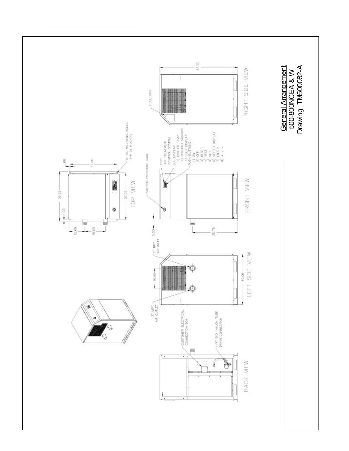 ZEKS CFX NC Series - Physical Arrangement and Parts; Dryer General Arrangement Views; Control Panel and Connection Points Identification