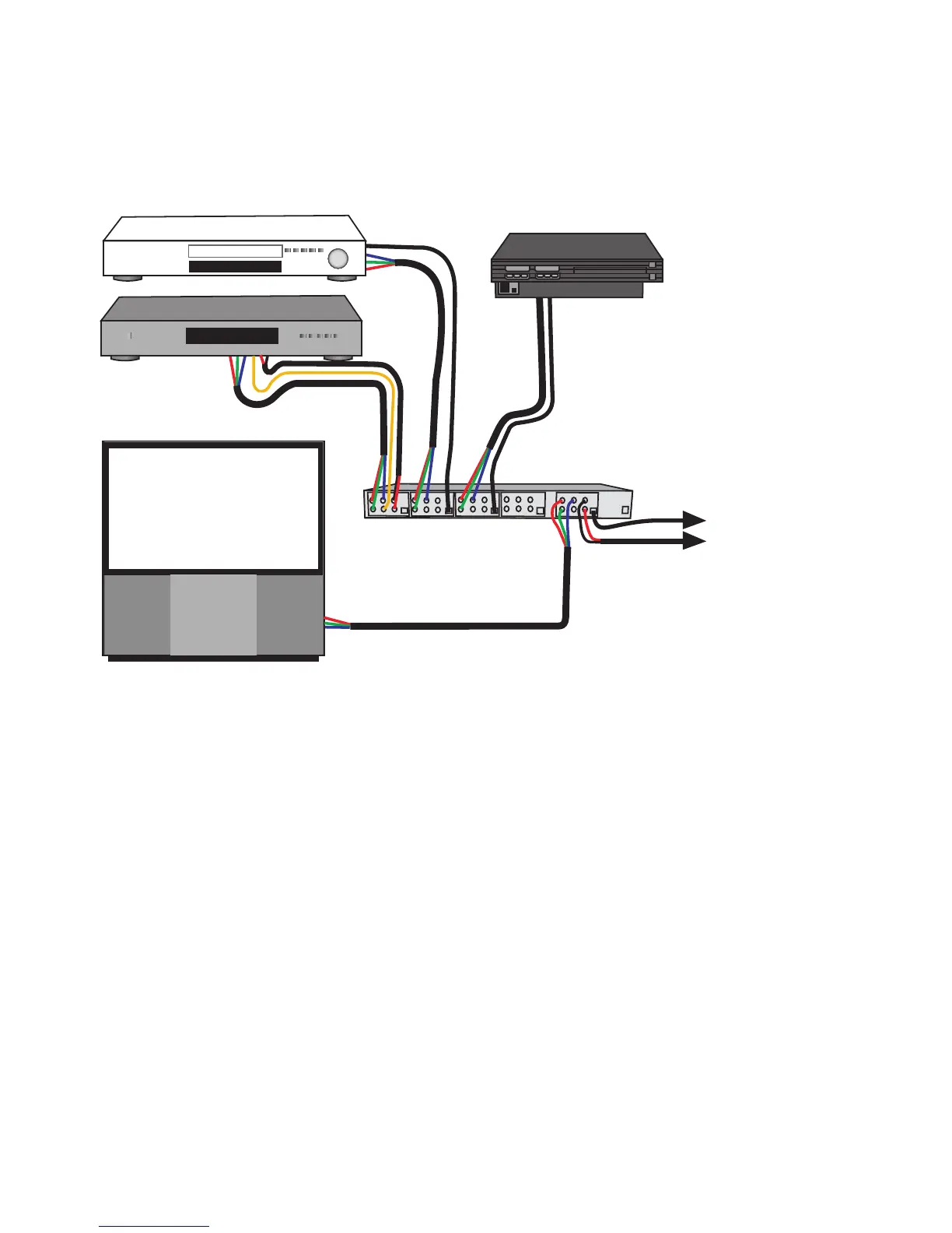 In this component video application, the DVD player and the game console have Toslink audio out-